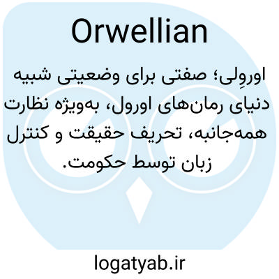 📌 مربوط به، ویژگی یا شبیه به اثر ادبی جورج اورول یا آینده تمامیتخواه توصیف شده در رمان ضدآرمانشهری او ۱۹۸۴ (۱۹۴۹).