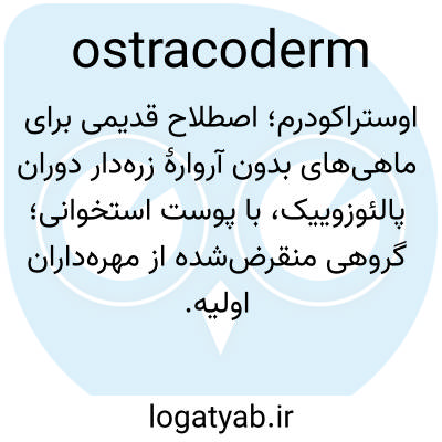 📌 هر یک از چندین ماهی بیآرواره منقرضشده از دورههای اردویسین، سیلورین و دونین که بدنشان در زرهی از صفحات استخوانی محصور شده بود.