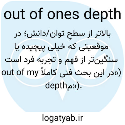 📌 همچنین، فراتر از درک یا صلاحیت فرد. خارج از درک یا صلاحیت فرد، مانند اینکه در آن کلاس حساب دیفرانسیل و انتگرال پیشرفته، او از درک خود خارج بود، یا رهبر ارکستر متوجه شد که نواختن فوگ با تمپوی مناسب فراتر از درک اوست. این عبارت به قرار گرفتن در آبی چنان عمیق اشاره دارد که ممکن است فرد غرق شود. [حدود ۱۶۰۰] همچنین بالای سر خود را ببینید.