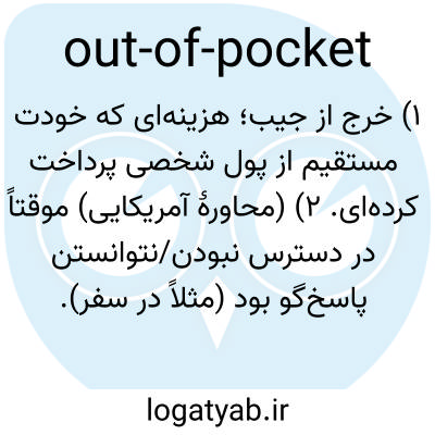 ۱) خرج از جیب؛ هزینه‌ای که خودت مستقیم از پول شخصی پرداخت کرده‌ای. ۲) (محاورهٔ آمریکایی) موقتاً در دسترس نبودن/نتوانستن پاسخ‌گو بود (مثلاً در سفر).