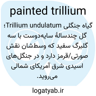 برگها نوکتیز؛ گلبرگها نوکتیز، در پایه دارای نوارهای بنفش. تریلیوم نقاشیشده، Trillium undulatum. 29a.