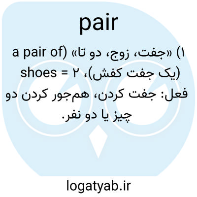 ۱) «جفت، زوج، دو تا» (a pair of shoes = یک جفت کفش)، ۲) فعل: جفت کردن، هم‌جور کردن دو چیز یا دو نفر.
