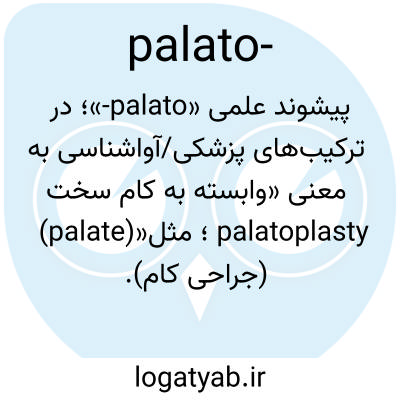 پیشوند علمی «palato-»؛ در ترکیب‌های پزشکی/آواشناسی به معنی «وابسته به کام سخت (palate)»؛ مثل palatoplasty (جراحی کام).