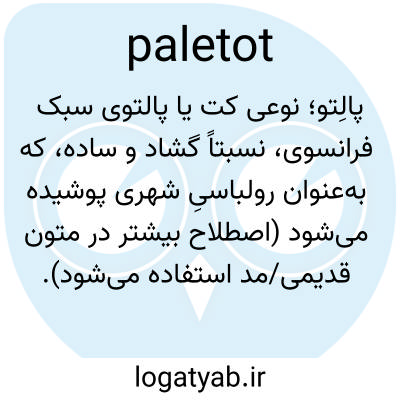 💡 Paletot, pal′e-tō, n. a loose overcoat.