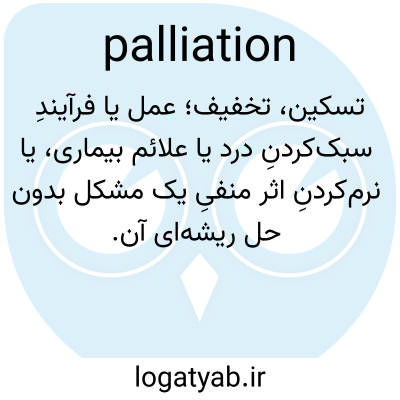 📌 عمل یا فرآیندی که رنج بیمار را تسکین می‌دهد، بدون اینکه بیماری مسبب آن را درمان کند.