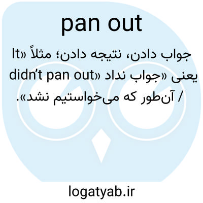 جواب دادن، نتیجه دادن؛ مثلاً «It didn’t pan out» یعنی «جواب نداد / آن‌طور که می‌خواستیم نشد».