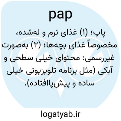 پاپ؛ (۱) غذای نرم و له‌شده، مخصوصاً غذای بچه‌ها؛ (۲) به‌صورت غیررسمی: محتوای خیلی سطحی و آبکی (مثل برنامه تلویزیونی خیلی ساده و پیش‌پاافتاده).