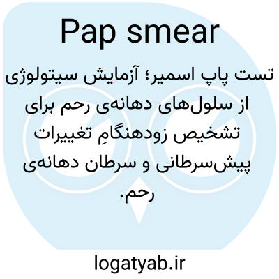 📌 یک آزمایش غربالگری، به ویژه برای سرطان دهانه رحم، که در آن یک اسمیر از سلولهای تراشیده شده از دهانه رحم یا واژن با یک رنگ شیمیایی آغشته شده و زیر میکروسکوپ برای تغییرات پاتولوژیک بررسی میشود. پاپ اسمیر به طور معمول در طول معاینات زنان انجام میشود.