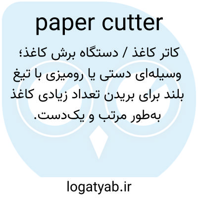 📌 هر وسیلهای برای برش یا پیرایش کاغذ، معمولاً یک تیغه وزنهدار، برقی یا فنری که روی یا بالای یک تخته یا میز خطکشی شده نصب شده است که میتوان چندین ورق کاغذ را برای برش همزمان روی آن تراز کرد.