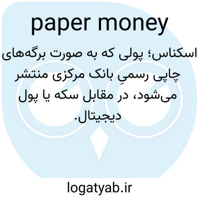 📌 پول رایج به شکل کاغذ، مانند اسکناس‌های دولتی و بانکی، که با پول فلزی متفاوت است.