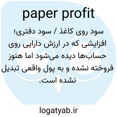 سود روی کاغذ / سود دفتری؛ افزایشی که در ارزش دارایی روی حساب‌ها دیده می‌شود اما هنوز فروخته نشده و به پول واقعی تبدیل نشده است.