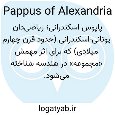 پاپوس اسکندرانی، هندسهدان یونانی قرن سوم یا چهارم، نویسندهی «مجموعههای ریاضی» در هشت کتاب که جلد اول و دوم آن از بین رفته است.