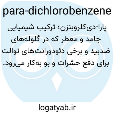 پارا-دی‌کلروبنزن؛ ترکیب شیمیایی جامد و معطر که در گلوله‌های ضدبید و برخی دئودورانت‌های توالت برای دفع حشرات و بو به‌کار می‌رود.