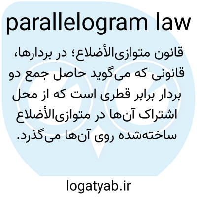 قانون متوازی‌الأضلاع؛ در بردارها، قانونی که می‌گوید حاصل جمع دو بردار برابر قطری است که از محل اشتراک آن‌ها در متوازی‌الأضلاع ساخته‌شده روی آن‌ها می‌گذرد.