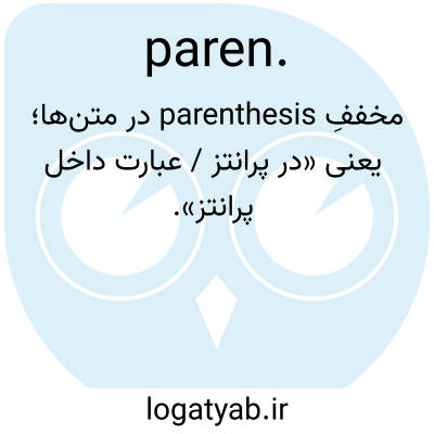 مخففِ parenthesis در متن‌ها؛ یعنی «در پرانتز / عبارت داخل پرانتز».