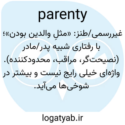 غیررسمی/طنز: «مثلِ والدین بودن»؛ با رفتاری شبیه پدر/مادر (نصیحت‌گر، مراقب، محدودکننده). واژه‌ای خیلی رایج نیست و بیشتر در شوخی‌ها می‌آید.