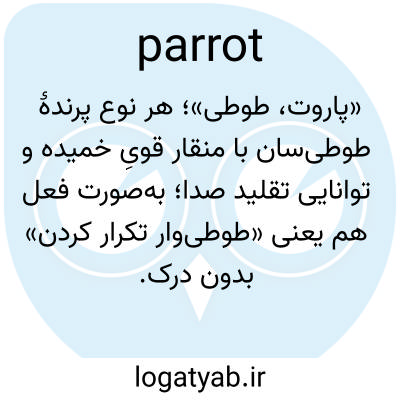 📌 هر یک از پرندگان متعدد منقار قلابدار و اغلب با رنگهای درخشان از راسته Psittaciformes، مانند کاکادو، لوری، ماکائو یا پاراکیت، که توانایی تقلید گفتار را دارند و اغلب به عنوان حیوان خانگی نگهداری میشوند.