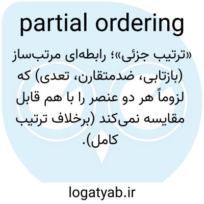 «ترتیب جزئی»؛ رابطه‌ای مرتب‌ساز (بازتابی، ضدمتقارن، تعدی) که لزوماً هر دو عنصر را با هم قابل مقایسه نمی‌کند (برخلاف ترتیب کامل).
