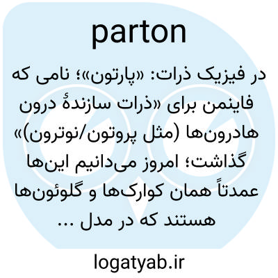 در فیزیک ذرات: «پارتون»؛ نامی که فاینمن برای «ذرات سازندهٔ درون هادرون‌ها (مثل پروتون/نوترون)» گذاشت؛ امروز می‌دانیم این‌ها عمدتاً همان کوارک‌ها و گلوئون‌ها هستند که در مدل parton برای توضیح برخوردهای پرانرژی استفاده می‌شوند.