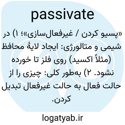 📌 (یک فلز) را تصفیه کردن تا سطح آن از نظر شیمیایی کمتر واکنشپذیر شود.