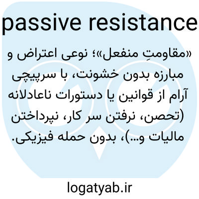 «مقاومتِ منفعل»؛ نوعی اعتراض و مبارزه بدون خشونت، با سرپیچی آرام از قوانین یا دستورات ناعادلانه (تحصن، نرفتن سر کار، نپرداختن مالیات و…)، بدون حمله فیزیکی.