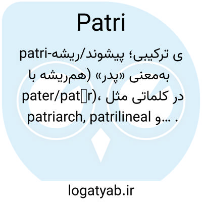 patri-؛ پیشوند/ریشه‌ی ترکیبی به‌معنی «پدر» (هم‌ریشه با pater/patḗr)، در کلماتی مثل patriarch, patrilineal و… .