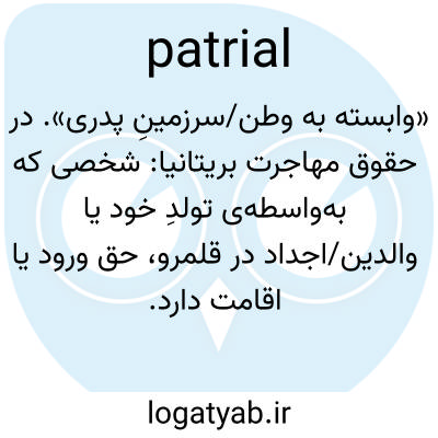 «وابسته به وطن/سرزمینِ پدری». در حقوق مهاجرت بریتانیا: شخصی که به‌واسطه‌ی تولدِ خود یا والدین/اجداد در قلمرو، حق ورود یا اقامت دارد.