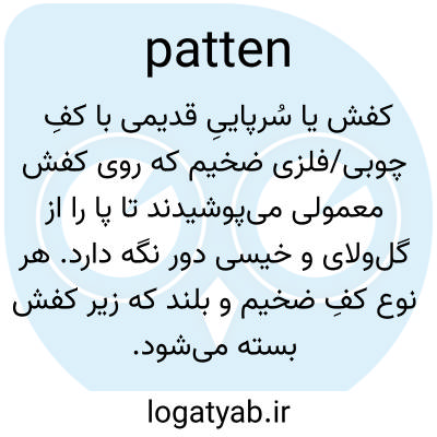 📌 هر یک از انواع مختلف پاپوش، مانند کفش چوبی، کفش با کف چوبی، کفش پاشنه‌بلند و غیره، برای محافظت از پا در برابر گل یا رطوبت.