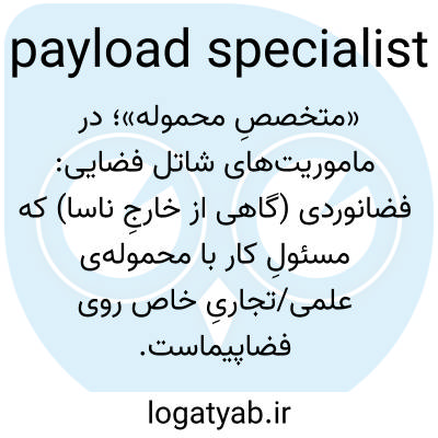 📌 فضانوردی که برای کار با تجهیزات بسیار پیچیده یا طبقهبندیشدهی حملشده در شاتل فضایی و انجام آزمایشها در فضا آموزش دیده است.