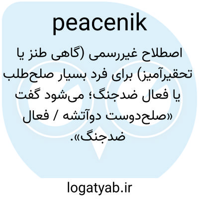 📌 فعال یا تظاهرکننده‌ای که با جنگ و مداخله نظامی مخالف است؛ صلح‌طلب.