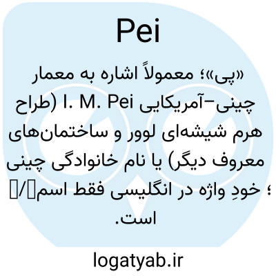 «پی»؛ معمولاً اشاره به معمار چینی–آمریکایی I. M. Pei (طراح هرم شیشه‌ای لوور و ساختمان‌های معروف دیگر) یا نام خانوادگی چینی 裴/贝؛ خودِ واژه در انگلیسی فقط اسم است.