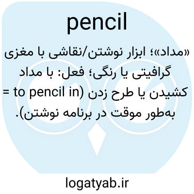 «مداد»؛ ابزار نوشتن/نقاشی با مغزی گرافیتی یا رنگی؛ فعل: با مداد کشیدن یا طرح زدن (to pencil in = به‌طور موقت در برنامه نوشتن).