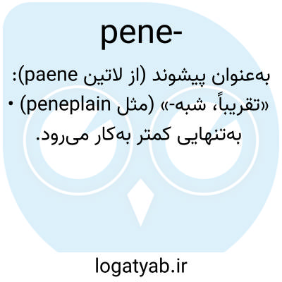 به‌عنوان پیشوند (از لاتین paene): «تقریباً، شبه-» (مثل peneplain) • به‌تنهایی کمتر به‌کار می‌رود.
