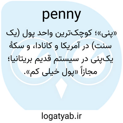 «پنی»؛ کوچک‌ترین واحد پول (یک سنت) در آمریکا و کانادا، و سکهٔ یک‌پنی در سیستم قدیم بریتانیا؛ مجازاً «پول خیلی کم».