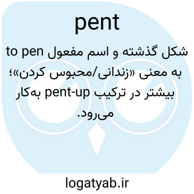 شکل گذشته و اسم مفعول to pen به معنی «زندانی/محبوس کردن»؛ بیشتر در ترکیب pent-up به‌کار می‌رود.