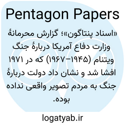 «اسناد پنتاگون»؛ گزارش محرمانهٔ وزارت دفاع آمریکا دربارهٔ جنگ ویتنام (۱۹۴۵–۱۹۶۷) که در ۱۹۷۱ افشا شد و نشان داد دولت دربارهٔ جنگ به مردم تصویر واقعی نداده بوده.