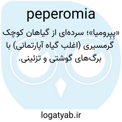 📌 هر یک از گیاهان گرمسیری و نیمهگرمسیری متعدد متعلق به جنس پپرومیا، از خانواده فلفل، که به عنوان گیاه آپارتمانی به خاطر شاخ و برگ زینتیشان کشت میشوند.