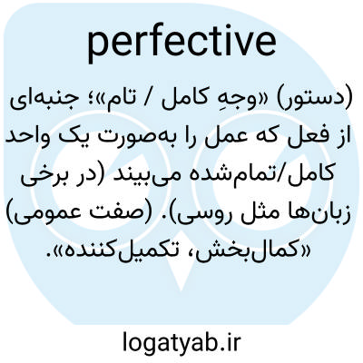 (دستور) «وجهِ کامل / تام»؛ جنبه‌ای از فعل که عمل را به‌صورت یک واحد کامل/تمام‌شده می‌بیند (در برخی زبان‌ها مثل روسی). (صفت عمومی) «کمال‌بخش، تکمیل‌کننده».