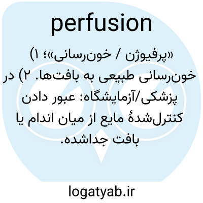 «پرفیوژن / خون‌رسانی»؛ ۱) خون‌رسانی طبیعی به بافت‌ها. ۲) در پزشکی/آزمایشگاه: عبور دادن کنترل‌شدهٔ مایع از میان اندام یا بافت جداشده.