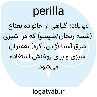 📌 هر یک از چندین گیاه معطر آسیایی متعلق به جنس پریلا، از خانواده نعناع، به ویژه P. frutescens، که در شرق ایالات متحده بومی شده و از آن روغن پریلا به دست میآید.