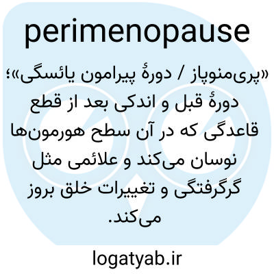 «پری‌منوپاز / دورهٔ پیرامون یائسگی»؛ دورهٔ قبل و اندکی بعد از قطع قاعدگی که در آن سطح هورمون‌ها نوسان می‌کند و علائمی مثل گرگرفتگی و تغییرات خلق بروز می‌کند.