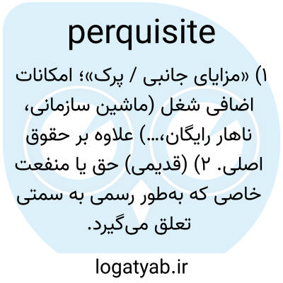 ۱) «مزایای جانبی / پرک»؛ امکانات اضافی شغل (ماشین سازمانی، ناهار رایگان،…) علاوه بر حقوق اصلی. ۲) (قدیمی) حق یا منفعت خاصی که به‌طور رسمی به سمتی تعلق می‌گیرد.