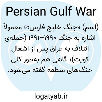 (اسم) «جنگ خلیج فارس»؛ معمولاً اشاره به جنگ ۱۹۹۰–۱۹۹۱ (حمله‌ی ائتلاف به عراق پس از اشغال کویت)؛ گاهی هم به‌طور کلی جنگ‌های منطقه گفته می‌شود.