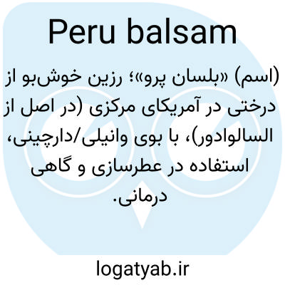 (اسم) «بلسان پرو»؛ رزین خوش‌بو از درختی در آمریکای مرکزی (در اصل از السالوادور)، با بوی وانیلی/دارچینی، استفاده در عطرسازی و گاهی درمانی.