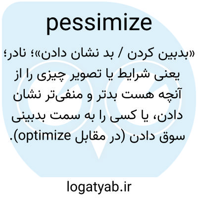 این کلمات، متضادهای واضح لاتین برای «optimal» و «optimize» هستند، اما به دلایلی در اکثر فرهنگهای لغت انگلیسی ظاهر نمیشوند، اگرچه «pessimize» در فرهنگ لغت انگلیسی آکسفورد فهرست شده است.