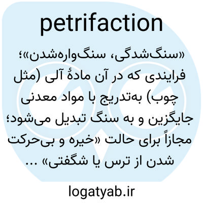 «سنگ‌شدگی، سنگ‌واره‌شدن»؛ فرایندی که در آن مادهٔ آلی (مثل چوب) به‌تدریج با مواد معدنی جایگزین و به سنگ تبدیل می‌شود؛ مجازاً برای حالت «خیره و بی‌حرکت شدن از ترس یا شگفتی» هم می‌آید.