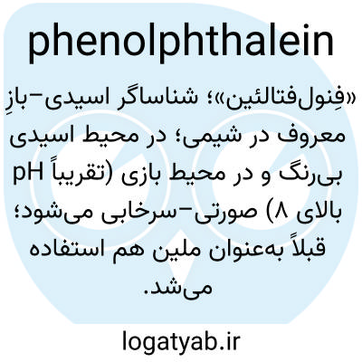 «فِنول‌فتالئین»؛ شناساگر اسیدی–بازِ معروف در شیمی؛ در محیط اسیدی بی‌رنگ و در محیط بازی (تقریباً pH بالای ۸) صورتی–سرخابی می‌شود؛ قبلاً به‌عنوان ملین هم استفاده می‌شد.