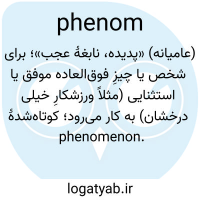 (عامیانه) «پدیده، نابغهٔ عجب»؛ برای شخص یا چیزِ فوق‌العاده موفق یا استثنایی (مثلاً ورزشکارِ خیلی درخشان) به کار می‌رود؛ کوتاه‌شدهٔ phenomenon.