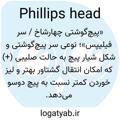 📌 یک سر پیچ که دو شیار جزئی با زاویه قائمه روی هم قرار گرفتهاند و توسط یک پیچگوشتی مخصوص فیلیپس هدایت میشوند.