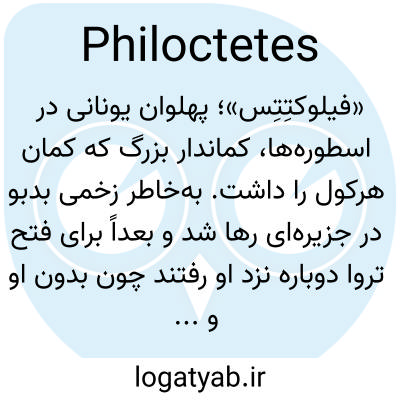 📌 اسطورهشناسی کلاسیک، کماندار برجسته و ملازم هرکول. او توسط ماری گزیده شد و به دلیل زخم چرکینش در جزیرهای رها شد، سرانجام توسط یونانیان به تروا آورده شد، جایی که بهبود یافت و بعداً پاریس را کشت.